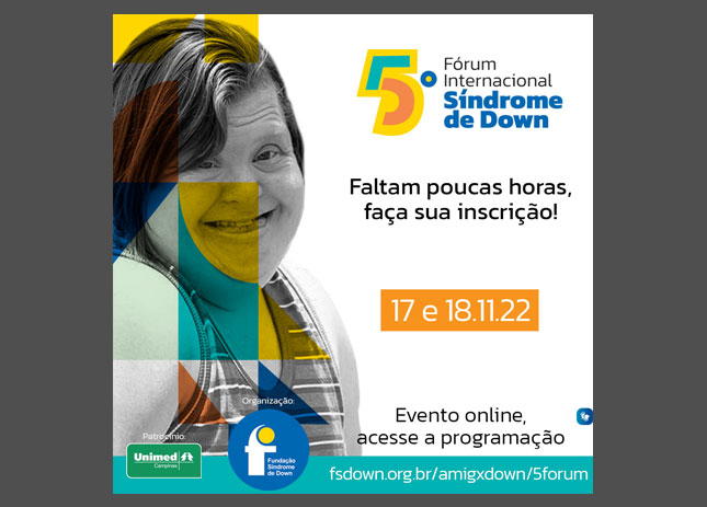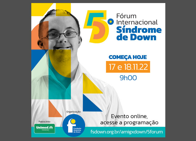 O 5º Fórum Internacional Síndrome de Down propôs um novo olhar sobre a condição adulta da pessoa com deficiência intelectual, com base nas reflexões e com a participação de vários paises americanos e europeus. A Soma Criativa assinou o branding do evento, que convidou a sociedade a superar a infantilização e reconhecer a autonomia como parte essencial da inclusão.